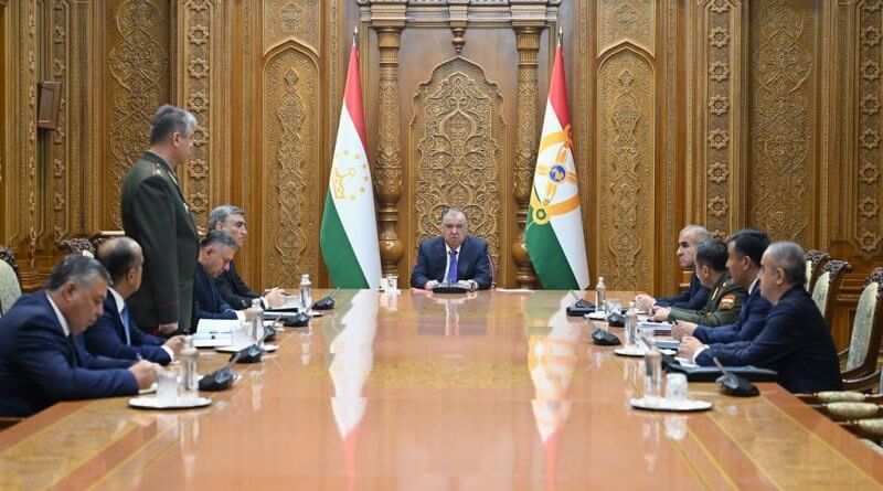 Президенти Ҷумҳурии Тоҷикистон Эмомалӣ Раҳмон бо роҳбарони сохторҳои қудратӣ ва ҳифзи ҳуқуқу тартиботи кишвар машварати корӣ доир намуданд