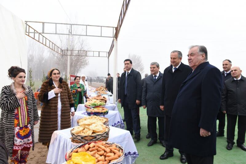 Пешвои миллат Эмомалӣ Раҳмон дар ноҳияи Ҷайҳун аз намоиши маҳсулоти кишоварзӣ боздид намуданд