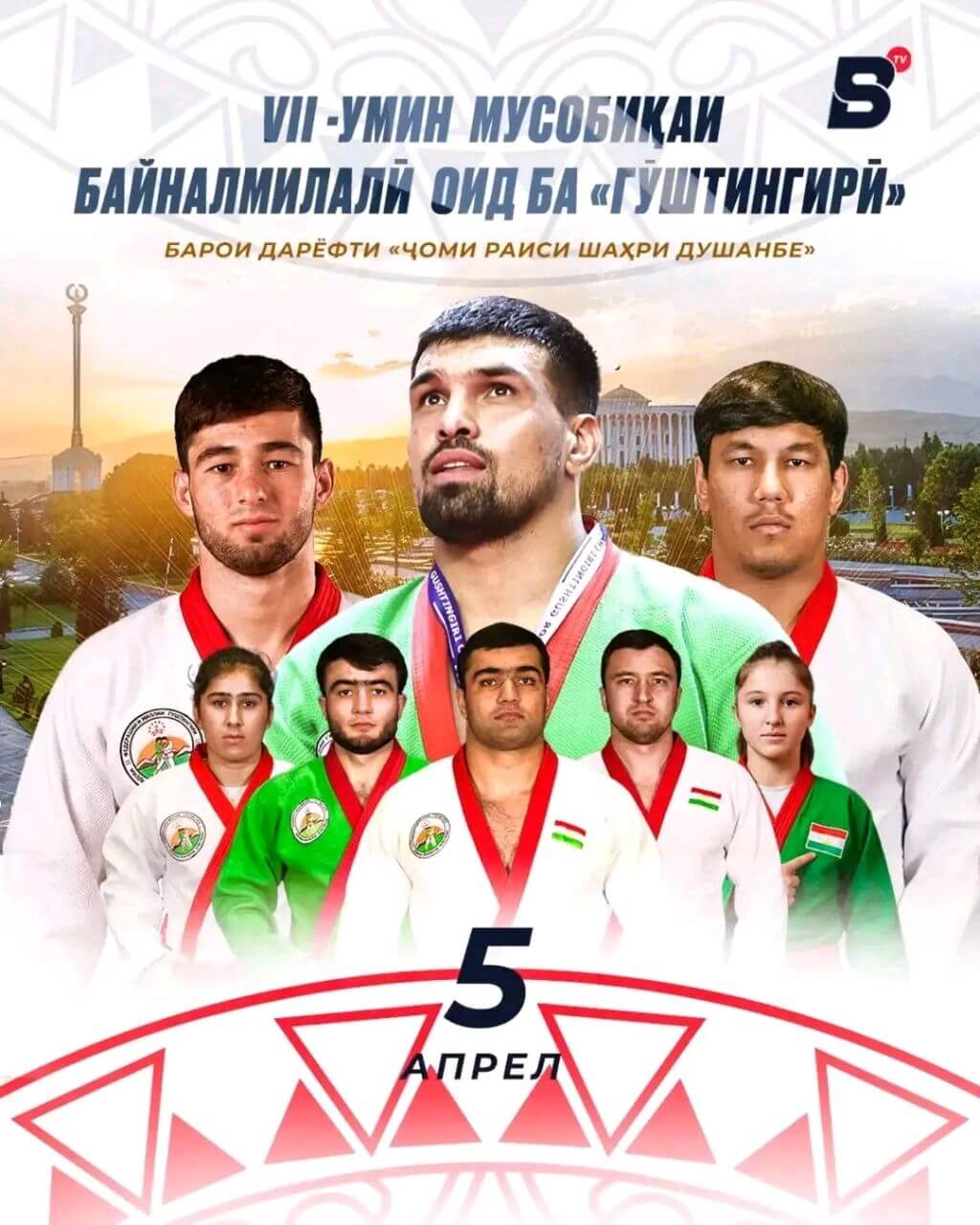 🇹🇯 5 –уми апрели соли 2026 дар Қасри теннис ва маҷмааи варзиши обӣ бахшида ба Рӯзи пойтахт барои дарёфти Ҷоми Раиси шаҳри Душанбе ҳафтумин Мусобиқаи байналмилалӣ оид ба гӯштингирӣ баргузор мегарад.