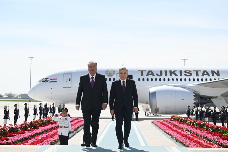 Дар фурудгоҳи байналмилалии Тошканд — Ҳумо меҳмони олиқадр Президенти Ҷумҳурии Тоҷикистонро бо нишони эҳтироми баланд роҳбари кишвари мизбон Президенти Ҷумҳурии Узбекистон муҳтарам Шавкат Мирзиёев гарму самимӣ истиқбол гирифтанд.